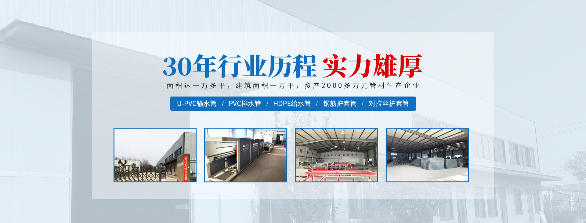 安陽(yáng)市祝豐塑化有限公司坐落在滑縣工業(yè)園區(qū),東臨大廣高速,西臨京珠高速,是鄭州、鶴壁、安陽(yáng)、濮陽(yáng)四個(gè)城市的輸紐,交通便利、環(huán)境優(yōu)美。 公司始建于八十年代,經(jīng)過(guò)二十余年的艱辛創(chuàng)業(yè),規(guī)模不斷壯大,由十多萬(wàn)元資產(chǎn)的小廠(chǎng),發(fā)展到現(xiàn)占地面積達(dá)一萬(wàn)多平,建筑面積一萬(wàn)平,資產(chǎn)2000多萬(wàn)元管材生產(chǎn)企業(yè)。公司生產(chǎn)PVC-U、PVC排水管、HDPE給水管、鋼筋護(hù)套管管道通訊管材等產(chǎn)品,廣泛用于農(nóng)田節(jié)水、高山引水、人畜用水、建筑、電力通訊等多種用途,品種齊全。為了滿(mǎn)足用戶(hù)需求,可承攬各種給水、節(jié)水、灌溉工程。“祝豐塑化”憑借強(qiáng)勁的實(shí)力,優(yōu)良的管理水平?!耙再|(zhì)量求生存,以信譽(yù)求發(fā)展”的原則全力以赴和大家共同塑造美好未來(lái)。..